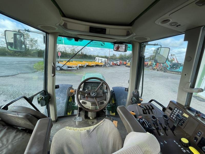 Tracteur John Deere 6820 4RM, 137 ch, transmission Semi-Powershift, PTO 540/540E/1000. Robuste, bien équipé (relevage avant, 3 distributeurs), cabine climatisée. Vendu dans l’état.
