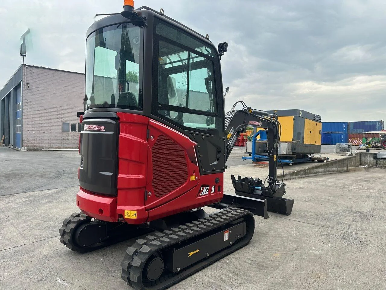 Mini-pelle Rhinoceros XN28 (2024) compacte et performante, équipée de 3 godets. Idéale pour le terrassement et les travaux en espaces restreints.
